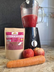 A Beterraba em pó é um alimento revitalizante, rico em ferro, excelente para pré-treino que melhora a performance e resistência no treino, previne a anemia e melhora a energia.