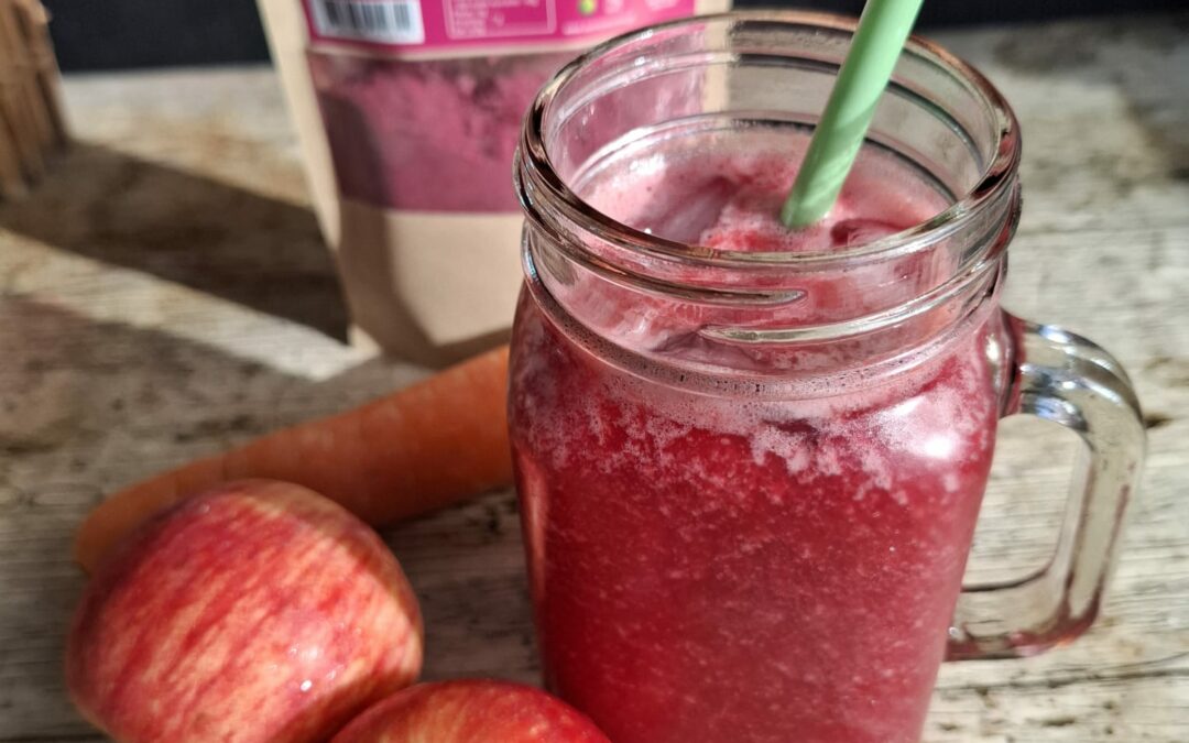 Maravilhoso Batido de morangos, cenoura e beterraba!
